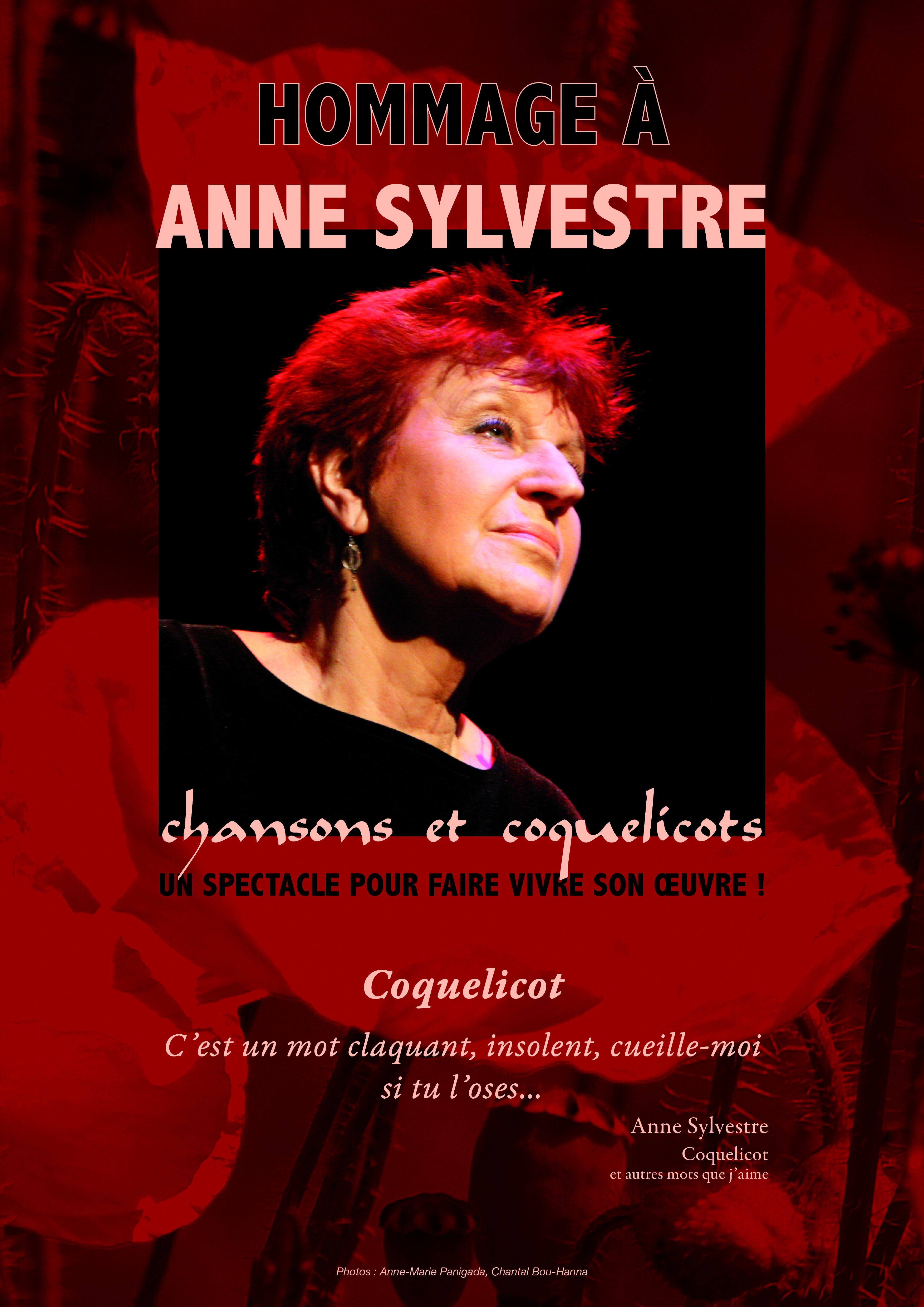 Dix chanteurs, chanteuses, musiciens, musiciennes et une metteure en scène se retrouvent pour rendre hommage à Anne Sylvestre, en créant le spectacle « Chansons et Coquelicots ».